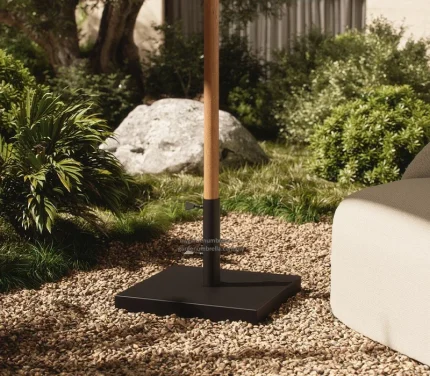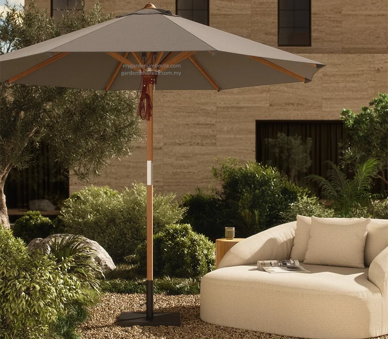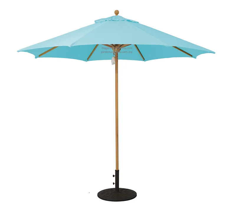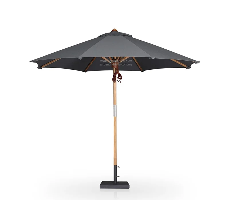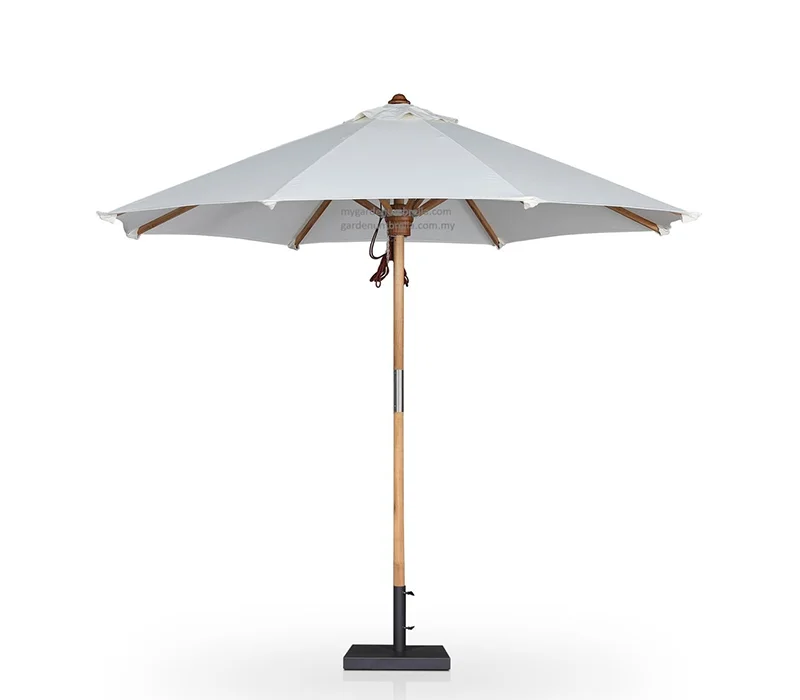 Teak wood centre pole classic umbrella with a heavy duty base